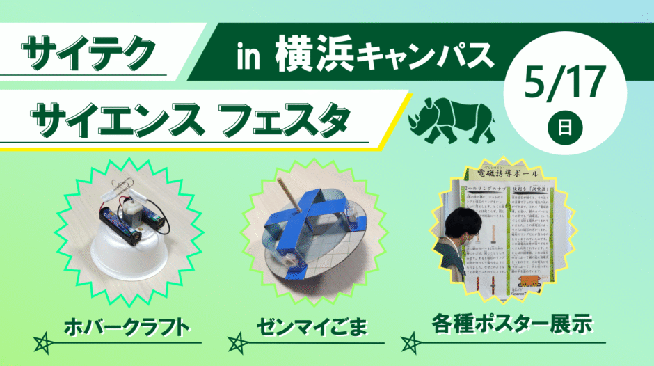 5月17(日)に東京科学大学横浜キャンパス(旧すずかけ台キャンパス)にて、すずかけサイエンスデイ2026が行われます。その中で、サイテクは「サイテクサイエンスフェスタ」と題して、工作ワークショップとポスター展示を開催します。皆様のご来場をお待ちしております!